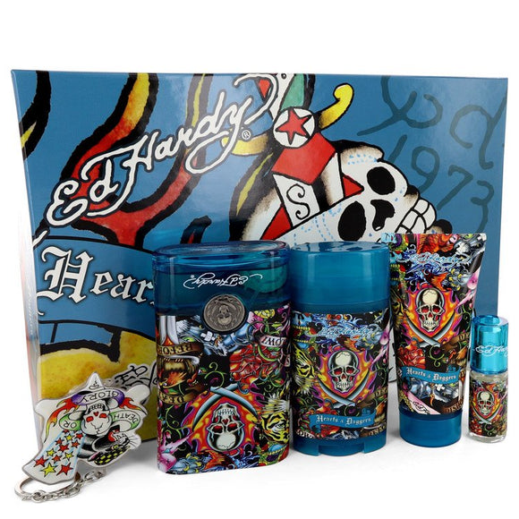 Ed Hardy Hearts & Daggers Gift Set 3.4 oz Eau De Toilette Spray + 3 oz Shower Gel + 2.75 oz Deodorant Stick + .25 oz Mini EDT Spray + Free Key Chain For Men by Christian Audigier